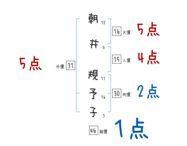 朝井規予子さんの画数の鑑定結果