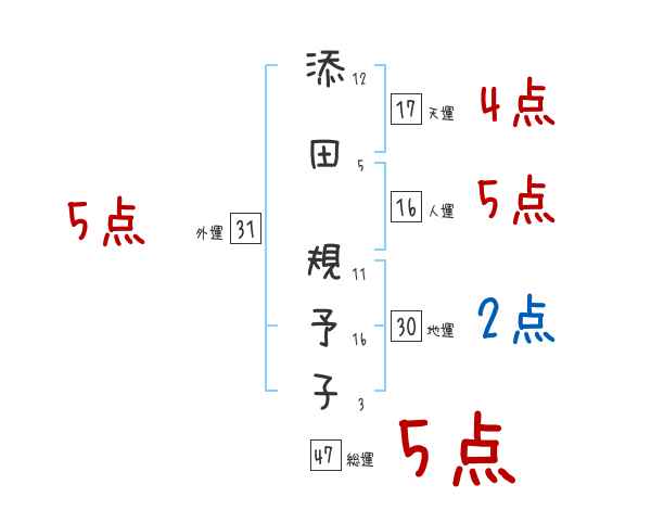 添田規予子さんの画数の鑑定結果