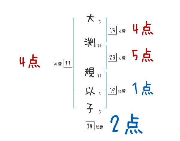 大渕規以子さんの総運は34画の2つ星