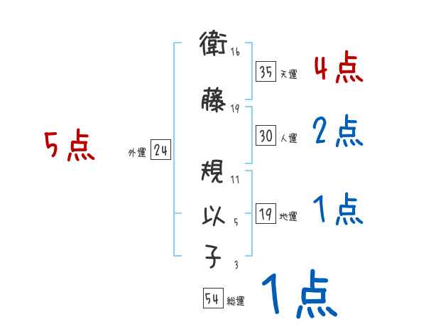 天運![]() | 衛藤規以子さんの天運は35画の4つ星!温厚な性格で感受性が高い。穏和な性格で人望が厚い。 家系が持つ宿命的な運勢を表します。祖先から受け継いだ苗字ですので自分の力が及びません。家柄を象徴します。 |