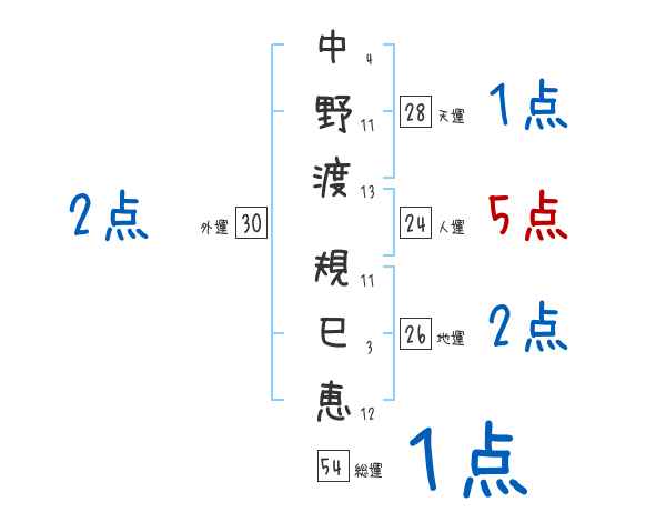 総運![]() | 中野渡規巳恵さんの総運は54画の1つ星!トラブルが多いかも。周りをよく見て協調して過ごしましょう。 あなたの人生を表す1番重要な運勢です。生涯を通じて影響する総合運となり、主に50歳以降の晩年期に影響を及ぼします。 |