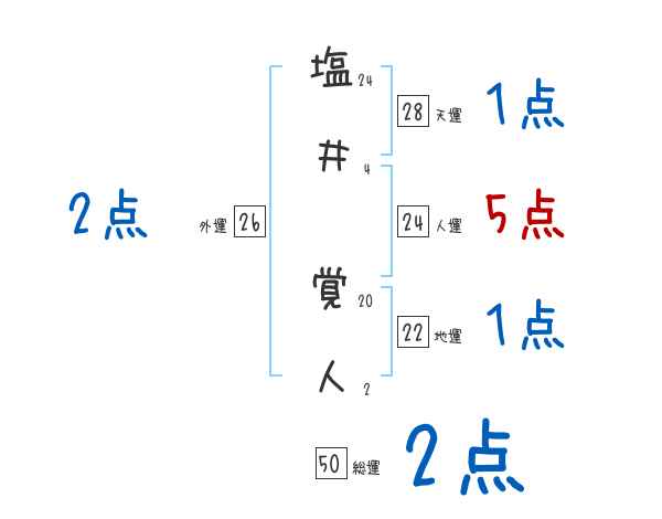 塩井覚人さんの画数の鑑定結果