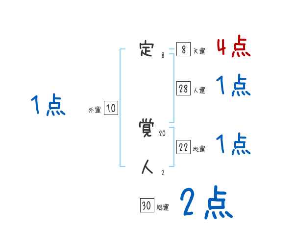 外運![]() | 定覚人さんの外運は10画の1つ星!不安を感じやすい傾向。ストレスを抱えないように注意しましょう。 生活面を象徴する運勢です。外部から受ける影響力を表し、結婚運、家庭運や職場、環境への順応性を表します。 |