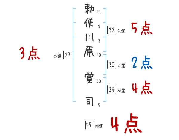 勅使川原覚司さんの画数の鑑定結果