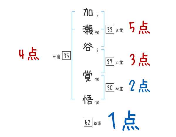 加瀬谷覚悟さんの画数の鑑定結果