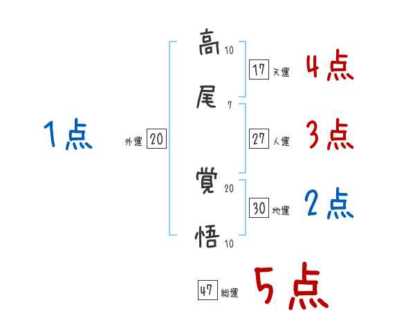 高尾覚悟さんの画数の鑑定結果