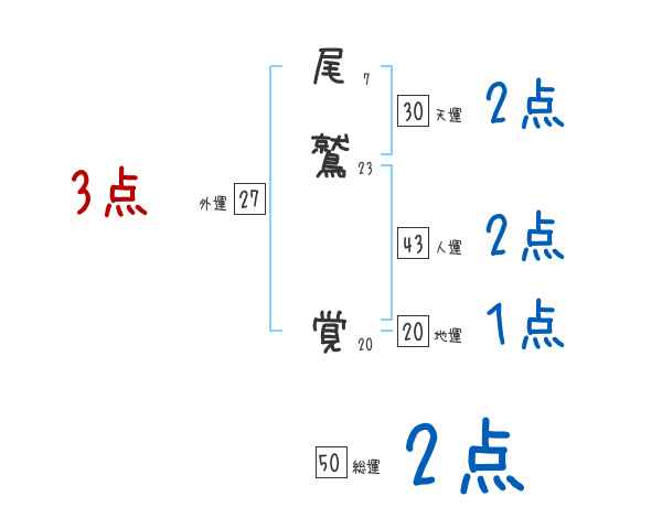 尾鷲覚さんの画数の鑑定結果