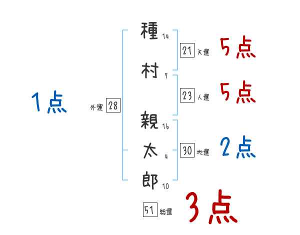 外運![]() | 種村親太郎さんの外運は28画の1つ星!家庭環境に注意。スポーツで活躍できる能力があるかも。 生活面を象徴する運勢です。外部から受ける影響力を表し、結婚運、家庭運や職場、環境への順応性を表します。 |