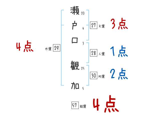 家系が持つ宿命的な運勢を表します。祖先から受け継いだ苗字ですので自分の力が及びません。家柄を象徴します。
