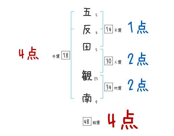 五反田観南さんの画数の鑑定結果