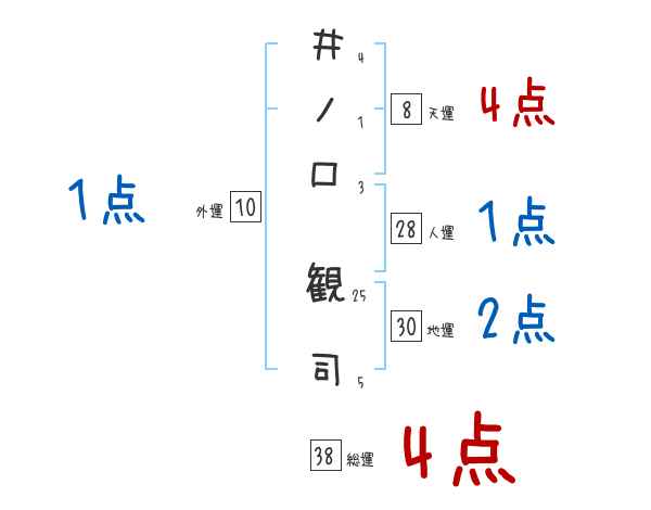 人運![]() | 井ノ口観司さんの人運は28画の1つ星!家庭環境に注意。スポーツで活躍できる能力があるかも。 性格や才能などを表す2番目に重要な運勢です。人間関係や協調性、社会的な成功に影響します。主に20歳から50歳ぐらいまでの中年期の運勢を表します。 |