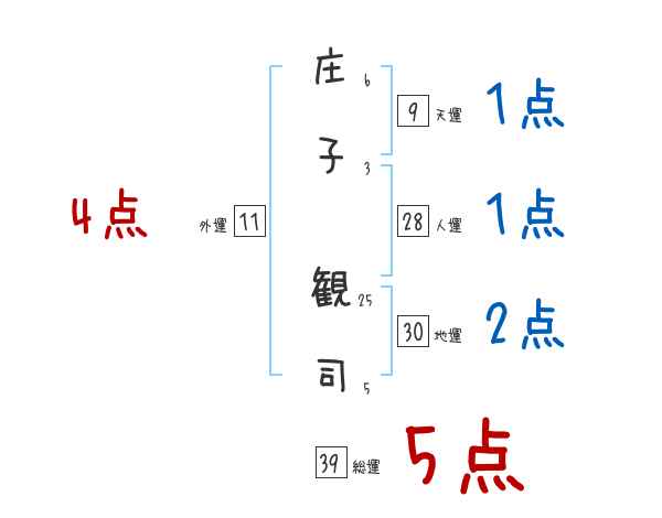 庄子観司さんの画数の鑑定結果