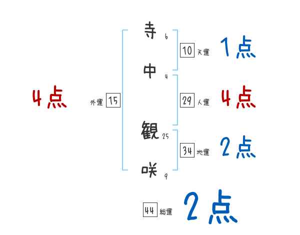 寺中観咲さんの画数の鑑定結果