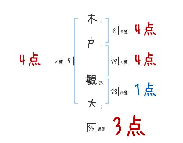 総運![]() | 木戸観大さんの総運は36画の3つ星!先見性が豊かです。多少神経質で苦労することも。 あなたの人生を表す1番重要な運勢です。生涯を通じて影響する総合運となり、主に50歳以降の晩年期に影響を及ぼします。 |