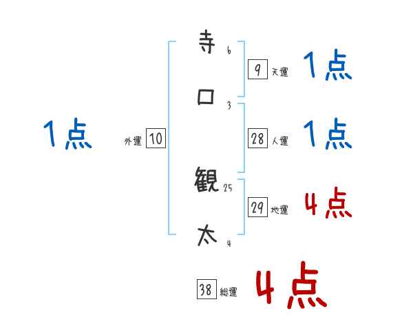 寺口観太さんの画数の鑑定結果
