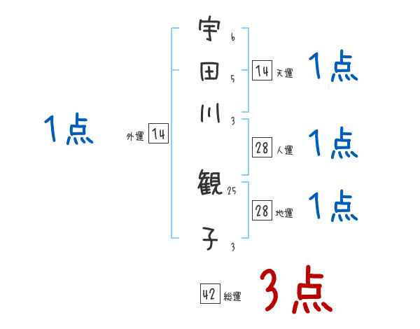 天運![]() | 宇田川観子さんの天運は14画の1つ星!人に対して優しいがストレスを溜め込みがち。人間関係のトラブルを避けるよう気をつけましょう。 家系が持つ宿命的な運勢を表します。祖先から受け継いだ苗字ですので自分の力が及びません。家柄を象徴します。 |