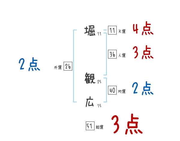 堀観広さんの画数の鑑定結果