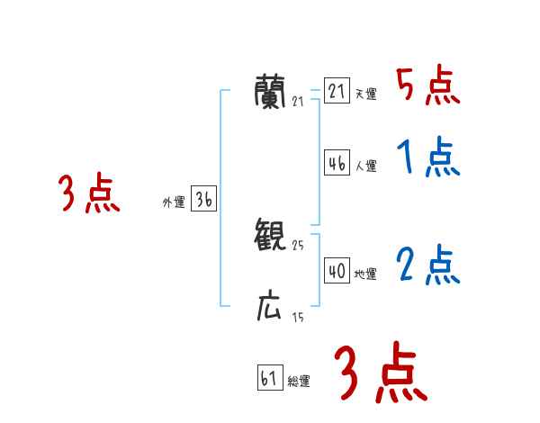 蘭観広さんの画数の鑑定結果