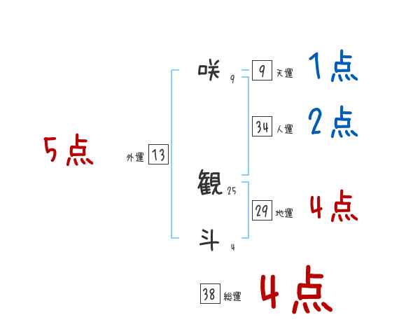 咲観斗さんの画数の鑑定結果