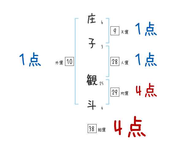 家系が持つ宿命的な運勢を表します。祖先から受け継いだ苗字ですので自分の力が及びません。家柄を象徴します。