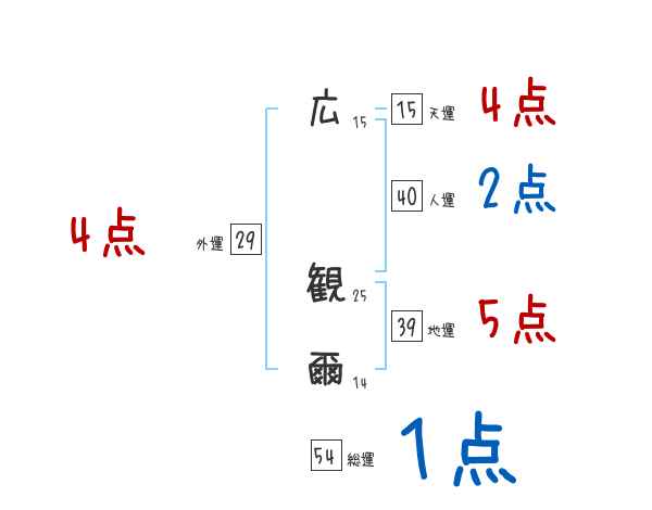 家系が持つ宿命的な運勢を表します。祖先から受け継いだ苗字ですので自分の力が及びません。家柄を象徴します。