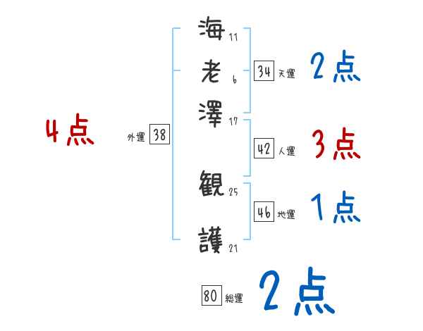 人運![]() | 海老澤観護さんの人運は42画の3つ星!病気に注意。多芸であるが消極的でおとなしい。 性格や才能などを表す2番目に重要な運勢です。人間関係や協調性、社会的な成功に影響します。主に20歳から50歳ぐらいまでの中年期の運勢を表します。 |