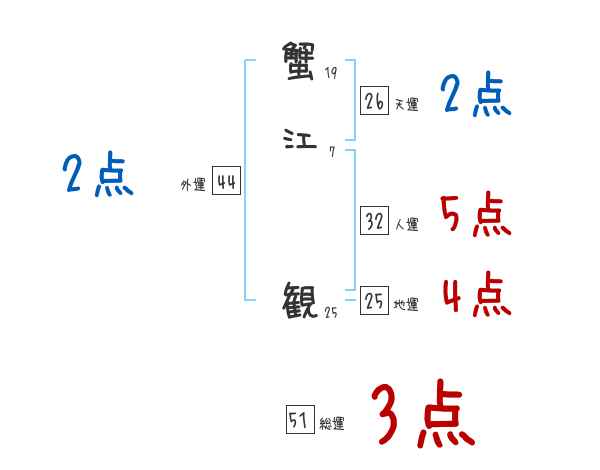 蟹江観さんの画数の鑑定結果