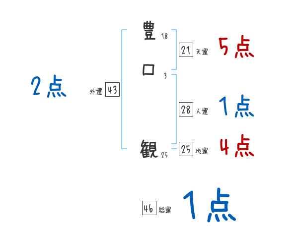 豊口観さんの画数の鑑定結果