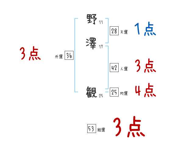 野澤観さんの画数の鑑定結果