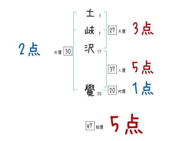 土岐沢覺さんの画数の鑑定結果