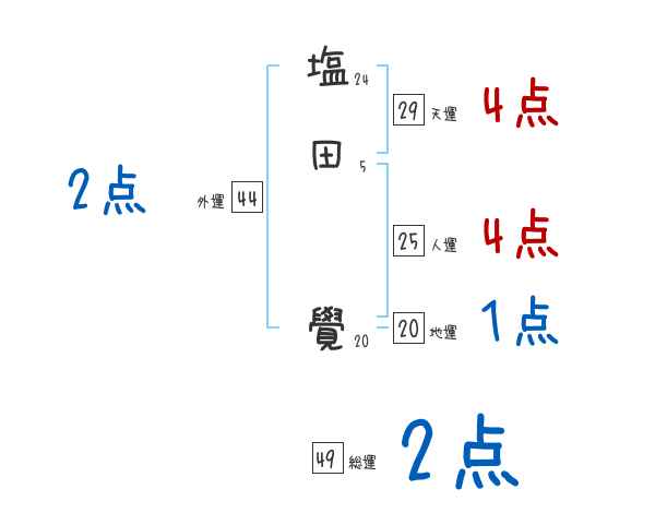 塩田覺さんの画数の鑑定結果