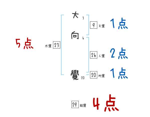 大向覺さんの画数の鑑定結果