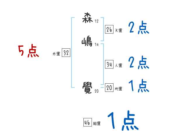森嶋覺さんの画数の鑑定結果