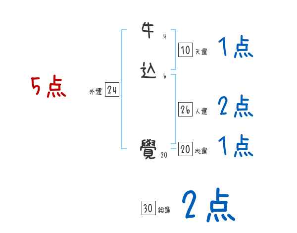 牛込覺さんの画数の鑑定結果