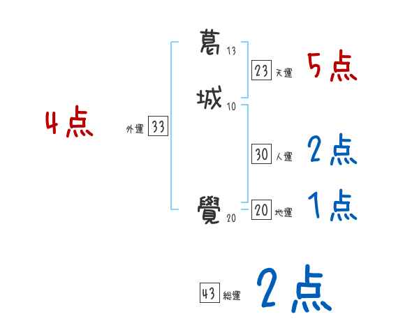 葛城覺さんの画数の鑑定結果
