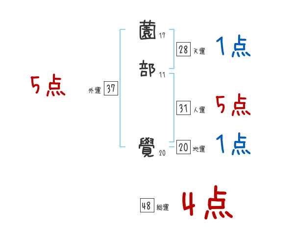総運![]() | 薗部覺さんの総運は48画の4つ星!賢明な性格で人望が厚い。指導力があり多くの人に尊敬される。 あなたの人生を表す1番重要な運勢です。生涯を通じて影響する総合運となり、主に50歳以降の晩年期に影響を及ぼします。 |