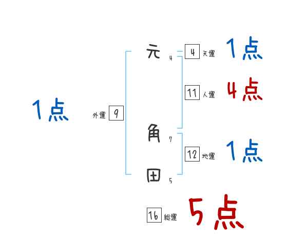 元角田さんの画数の鑑定結果