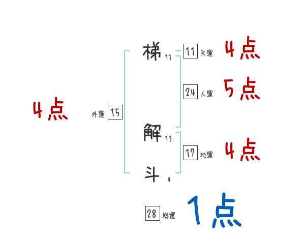 梯解斗さんの画数の鑑定結果