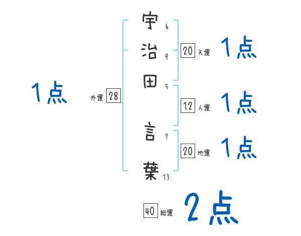 宇治田言葉さんの画数の鑑定結果