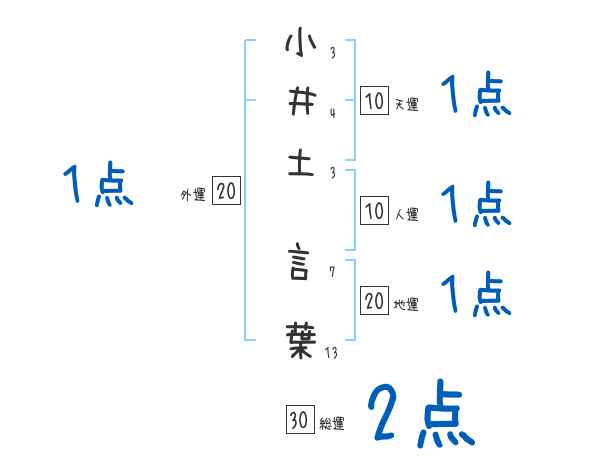 総運![]() | 小井土言葉さんの総運は30画の2つ星!浮き沈みの激しさに注意しましょう。 あなたの人生を表す1番重要な運勢です。生涯を通じて影響する総合運となり、主に50歳以降の晩年期に影響を及ぼします。 |