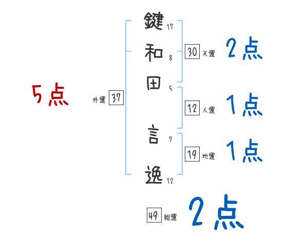 鍵和田言逸さんの画数の鑑定結果