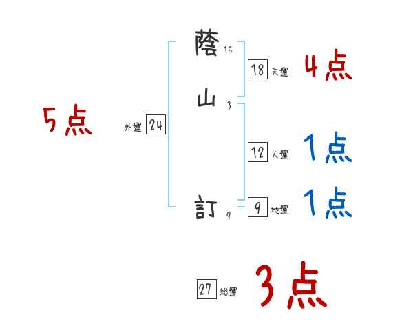 家系が持つ宿命的な運勢を表します。祖先から受け継いだ苗字ですので自分の力が及びません。家柄を象徴します。