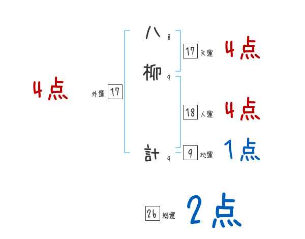 八柳計さんの画数の鑑定結果