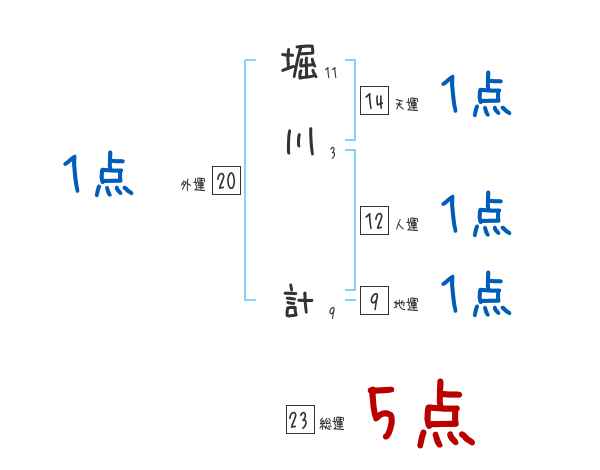 総運![]() | 堀川計さんの総運は23画の5つ星!想像力に優れ活力がある。一代で成功し名誉を手に入れる。 あなたの人生を表す1番重要な運勢です。生涯を通じて影響する総合運となり、主に50歳以降の晩年期に影響を及ぼします。 |