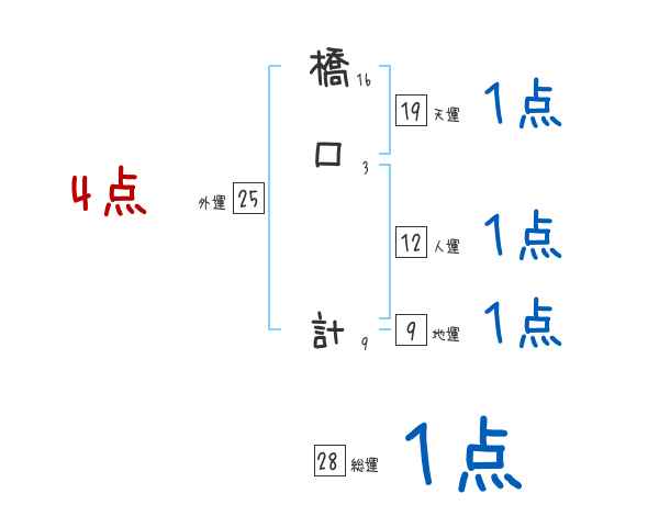 橋口計さんの画数の鑑定結果