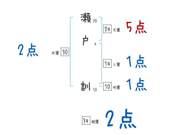 瀬戸訓さんの画数の鑑定結果