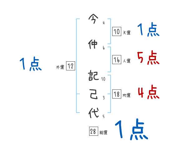 天運![]() | 今仲記己代さんの天運は10画の1つ星!不安を感じやすい傾向。ストレスを抱えないように注意しましょう。 家系が持つ宿命的な運勢を表します。祖先から受け継いだ苗字ですので自分の力が及びません。家柄を象徴します。 |