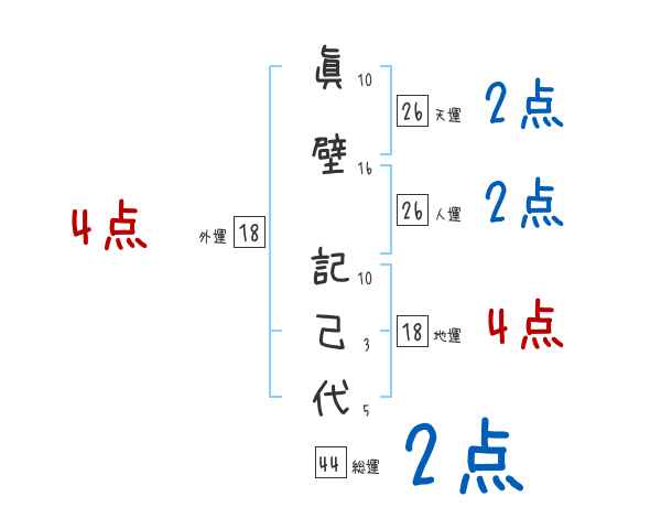 外運![]() | 眞壁記己代さんの外運は18画の4つ星!情熱的で剛気。忍耐力があり信頼される。 生活面を象徴する運勢です。外部から受ける影響力を表し、結婚運、家庭運や職場、環境への順応性を表します。 |