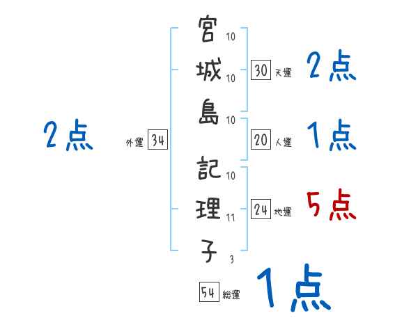 宮城島記理子さんの画数の鑑定結果