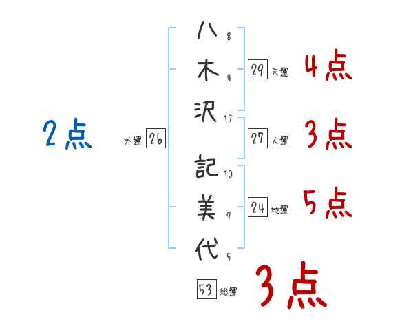 八木沢記美代さんの画数の鑑定結果